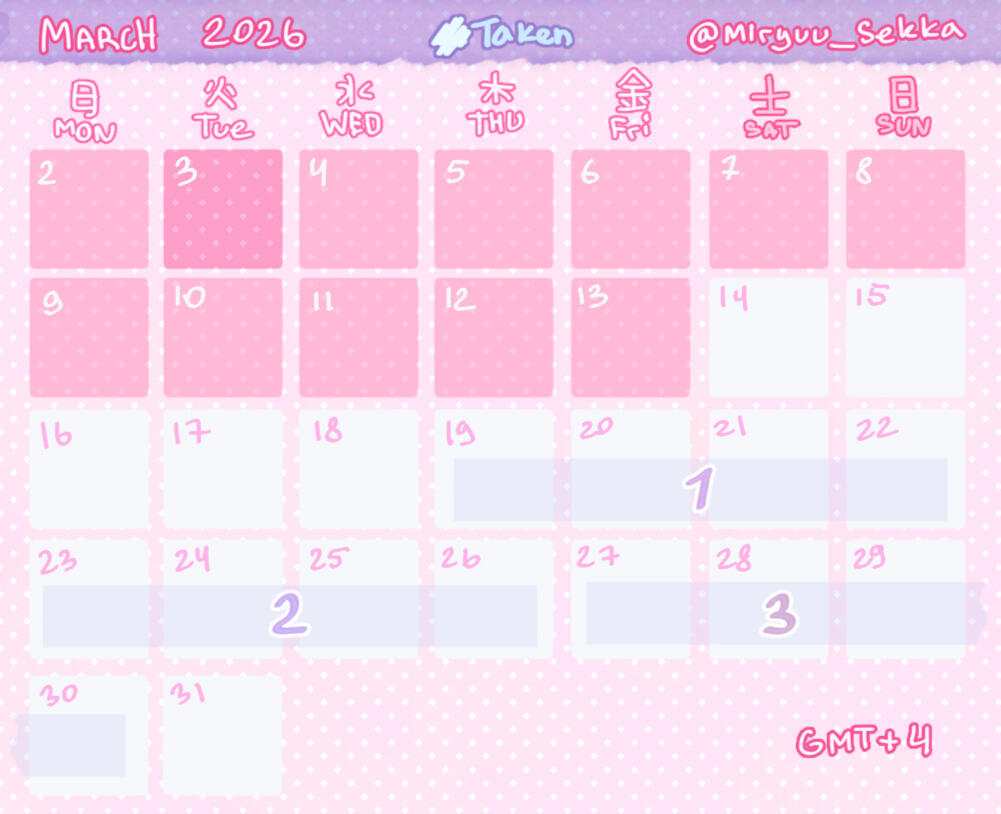 The next slot opening is in 11-12 April. Follow my Twitter(X) for updates! To quickly learn about available slots, message me (on Twitter(X) or by email) and ask to be added to the tag list!